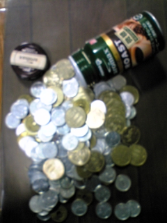 1円・5円玉を いっしょにつめこんだそうです。